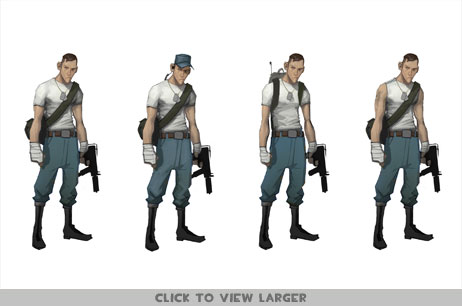 The Scout was one of the first TF2 classes we worked on when we decided to try out a more stylized approach to the game. As a result, his concept art is further afield, and in the eyes of our artists, much more embarrassing. This might be exacerbated by their desire to not have people looking at a piece of their artwork and not liking it, from an artistic point of view. Concept art has a different purpose than that, and so the effort to make it look great is usually unnecessary. In short, there's a special place in hell that all our artists hope we'll go to for showing you their concept art.
